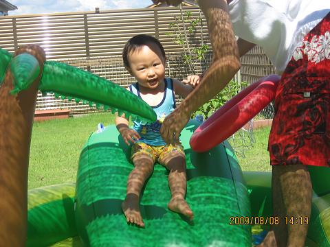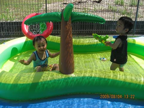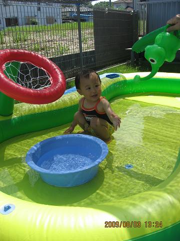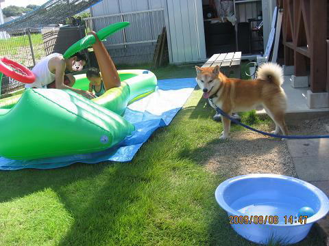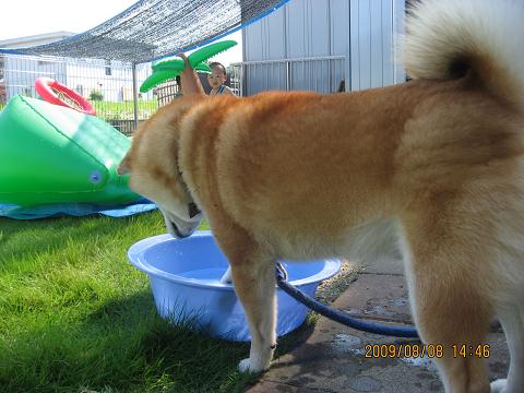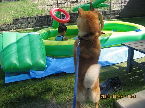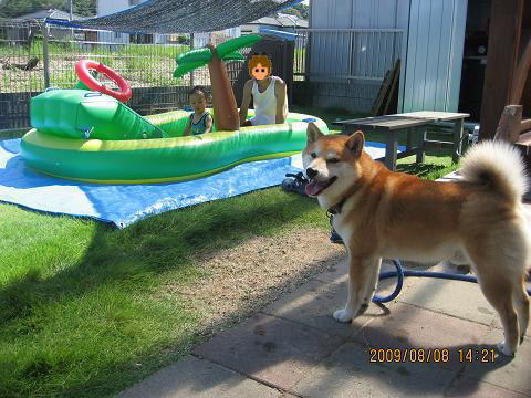 ケンシロウよ・・・一緒に遊びたい所だけど、プールの中が汚れるし、