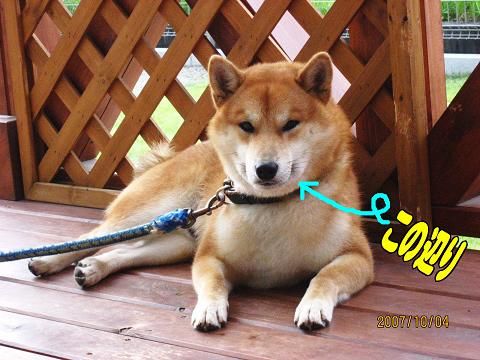 柴犬のこの頃の振り返った時のほっぺたムニ