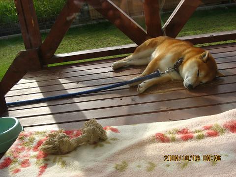 ケンシロウは元気です。少し綱を長くしてやると・・・